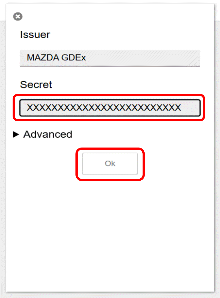 After entering 'Issuer' and 'Secret,' click 'OK'.