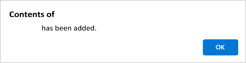 A Registration is complete when the dialog displays ' has been added.